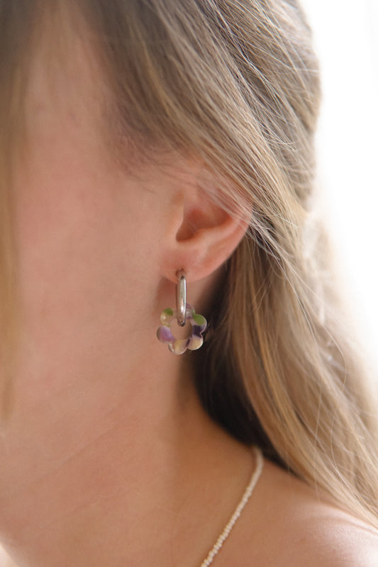 Creolen Floralia Schildpatt Violettgrün in Silber