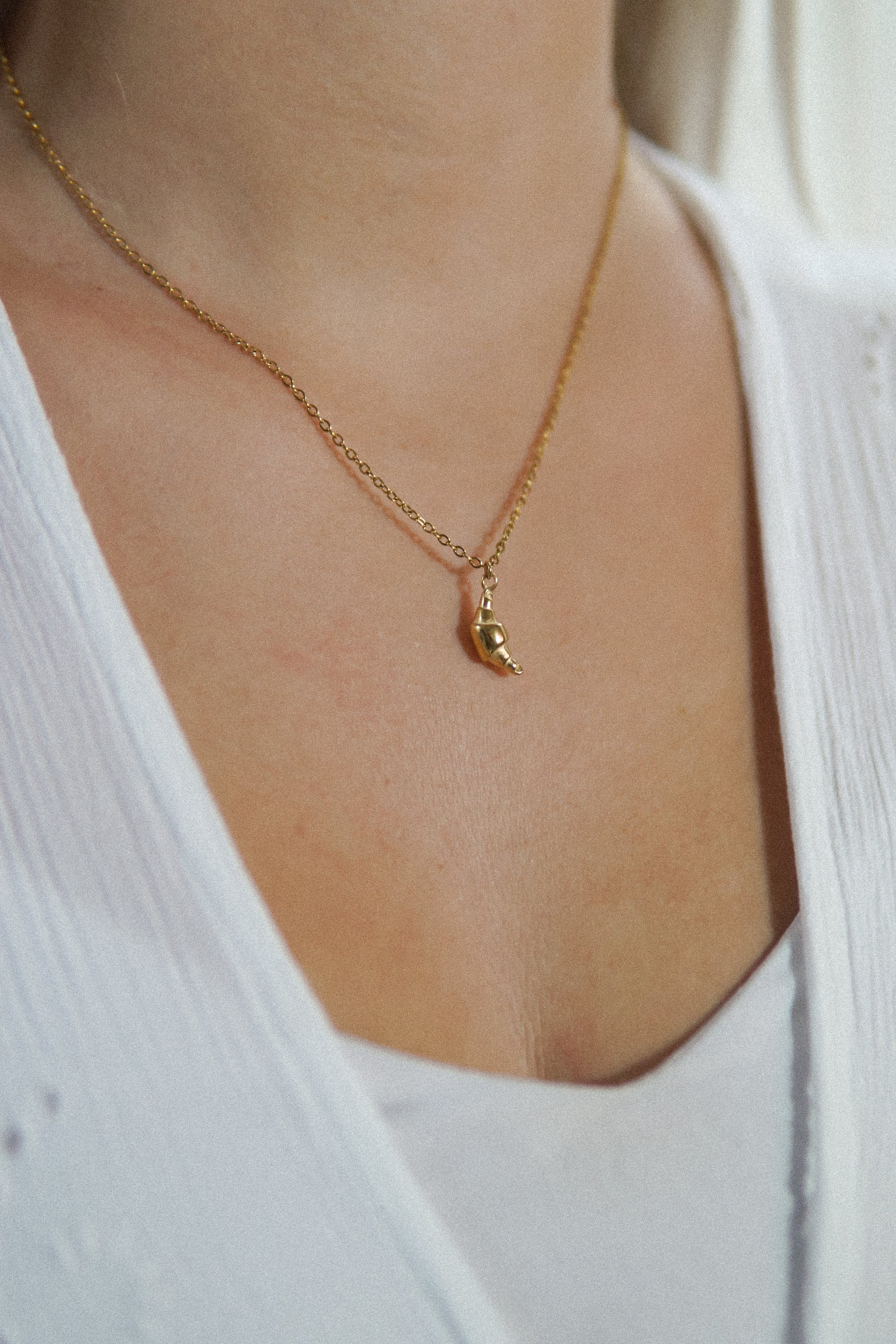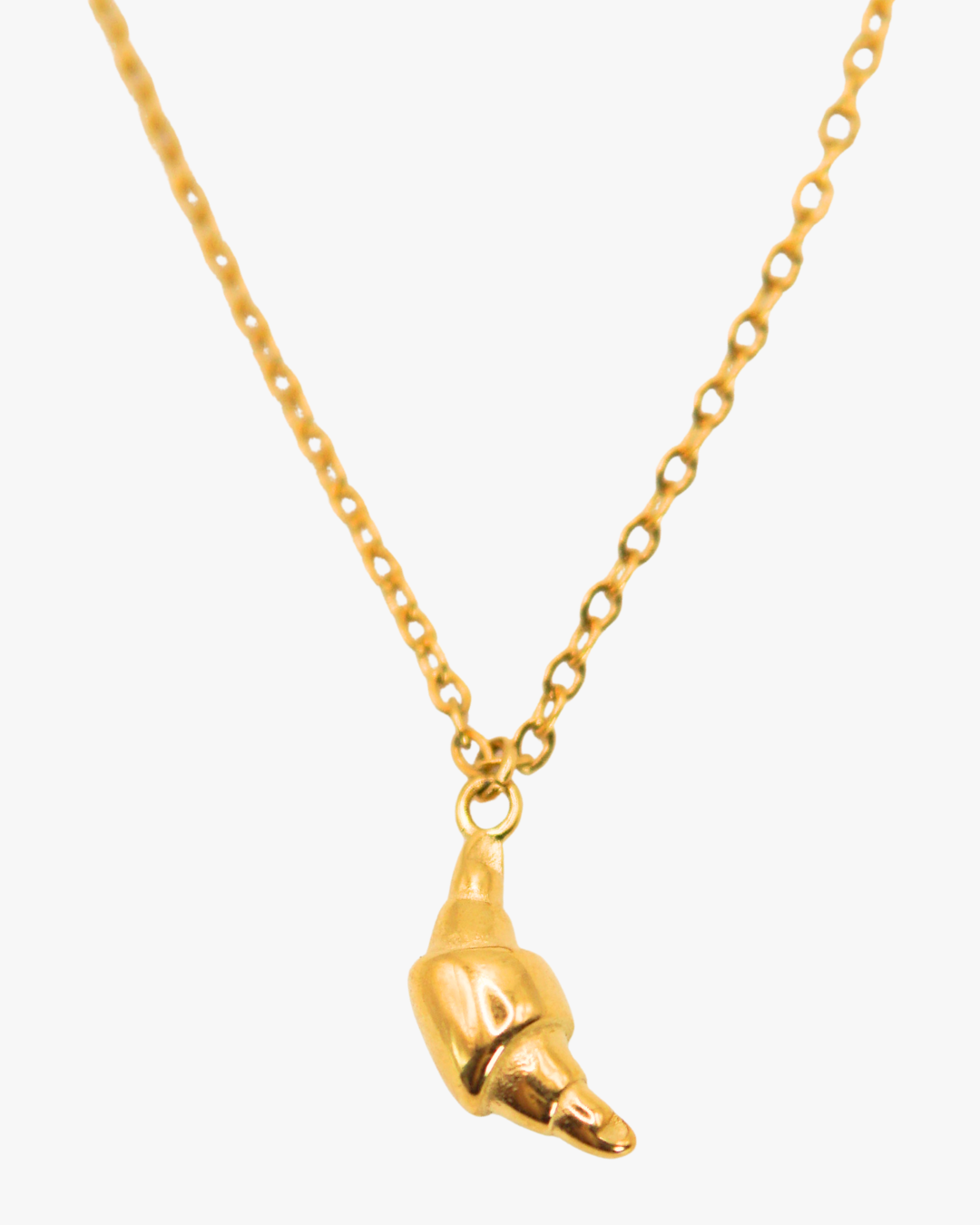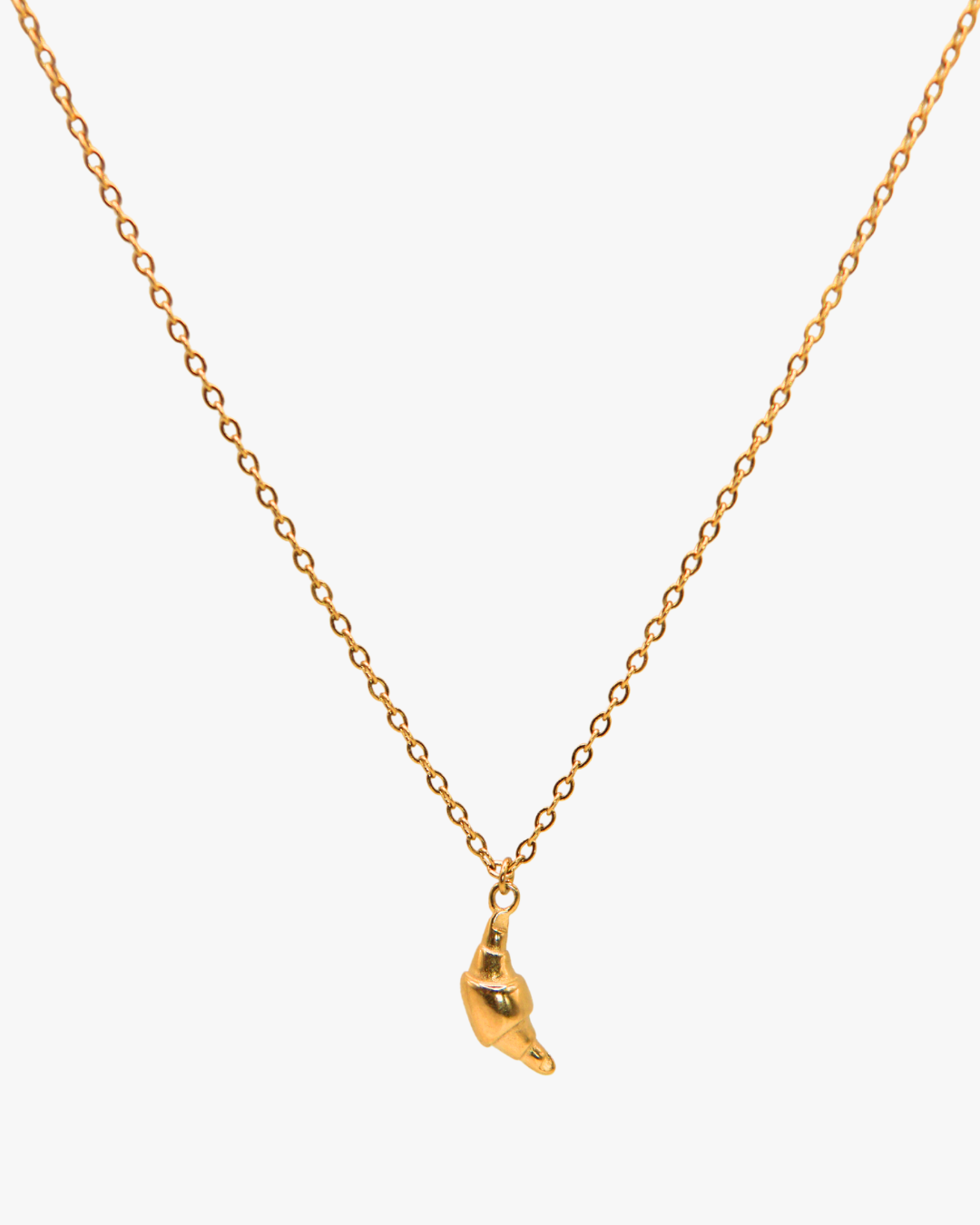 Diese goldene Edelstahlkette mit Croissant-Anhänger erinnert in ihrer Form an den abnehmenden Mond. Lune Croissant vereint schlichte Eleganz mit einem Hauch französischer Leichtigkeit.